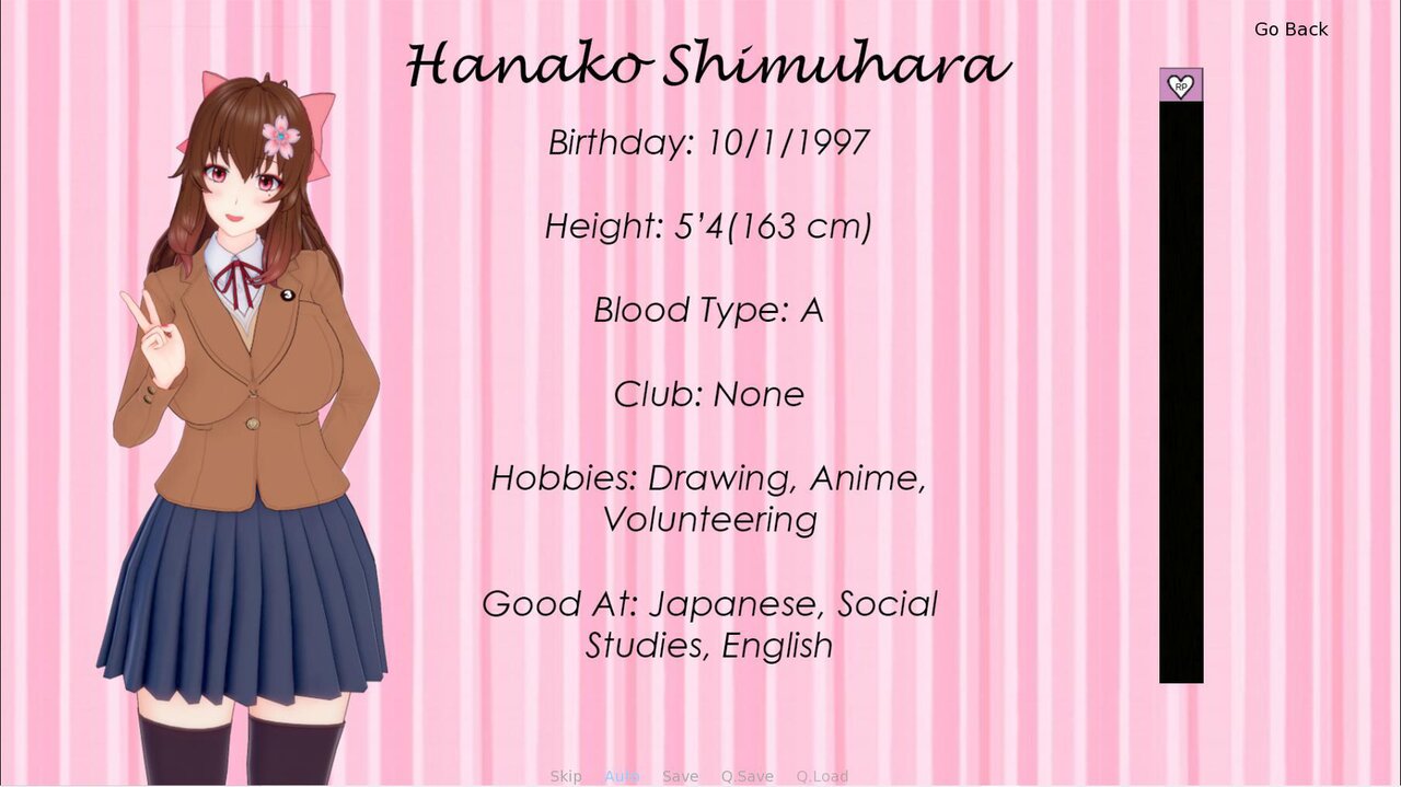 Hanako Shimuhara moves back to her hometown after her dad was traded back to his old professional team. She puts others first and is always looking out for those she cares about. A girl that was once meek, timid, and reserved is now outgoing, confident and extroverted. She encourages others and does everything she can to make sure everyone is happy.