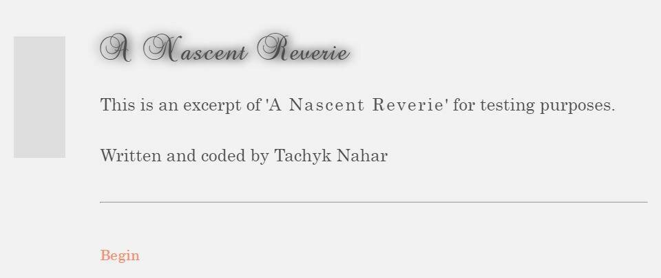 A Nascent Reverie: an excerpt