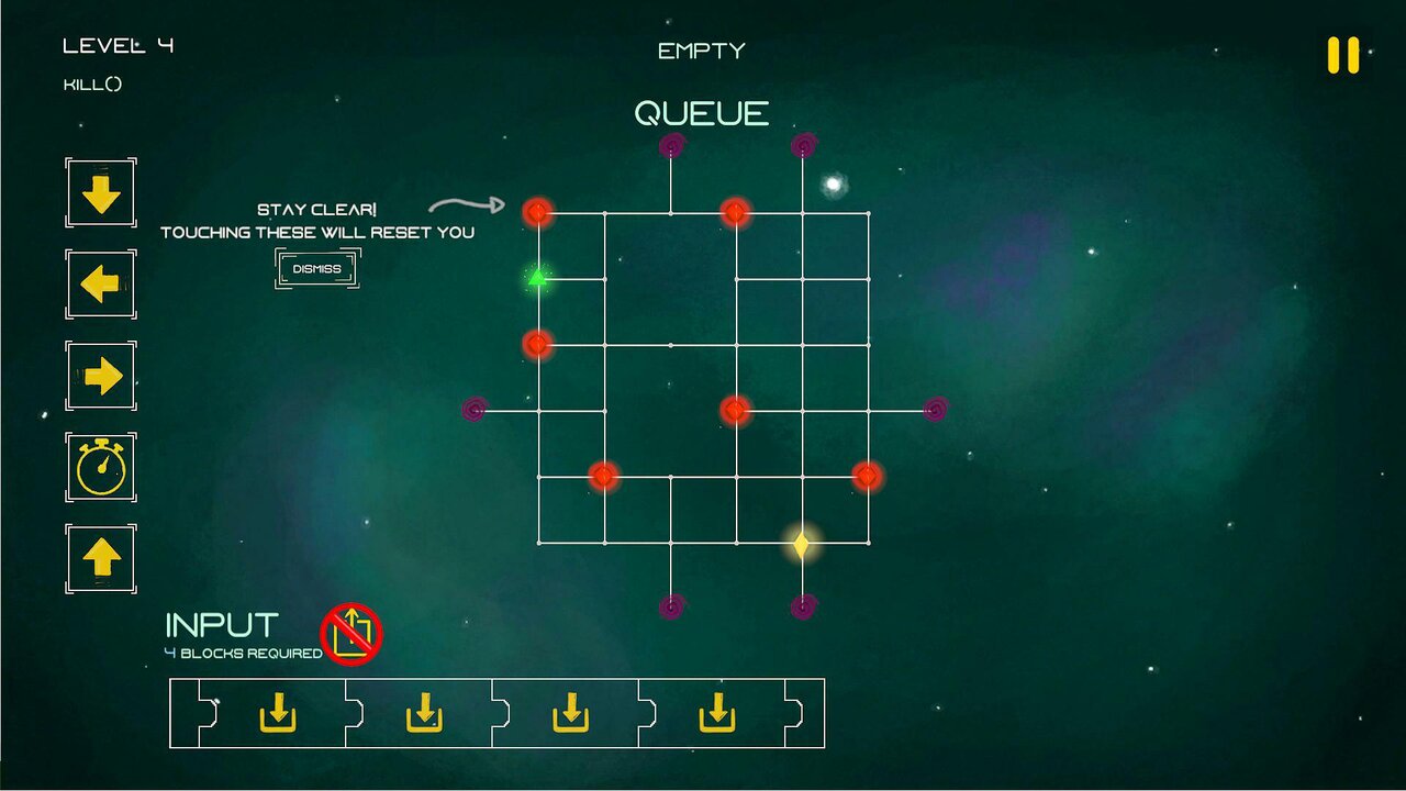 Our teams' entry into this round of Ludum Dare's game jam is called Active Cell, a sci-fi-inspired puzzle game. The players goal is to solve increasingly complex levels by commanding a specific amount of moves, which are looped by the game. The game has a steep learning curve and later levels might require some trial and error to solve due to the number of iterations that would have to be computed by the player. However, the maximum amount of moves that need to be selected in a single level is seven, keeping the game accessible to the player.