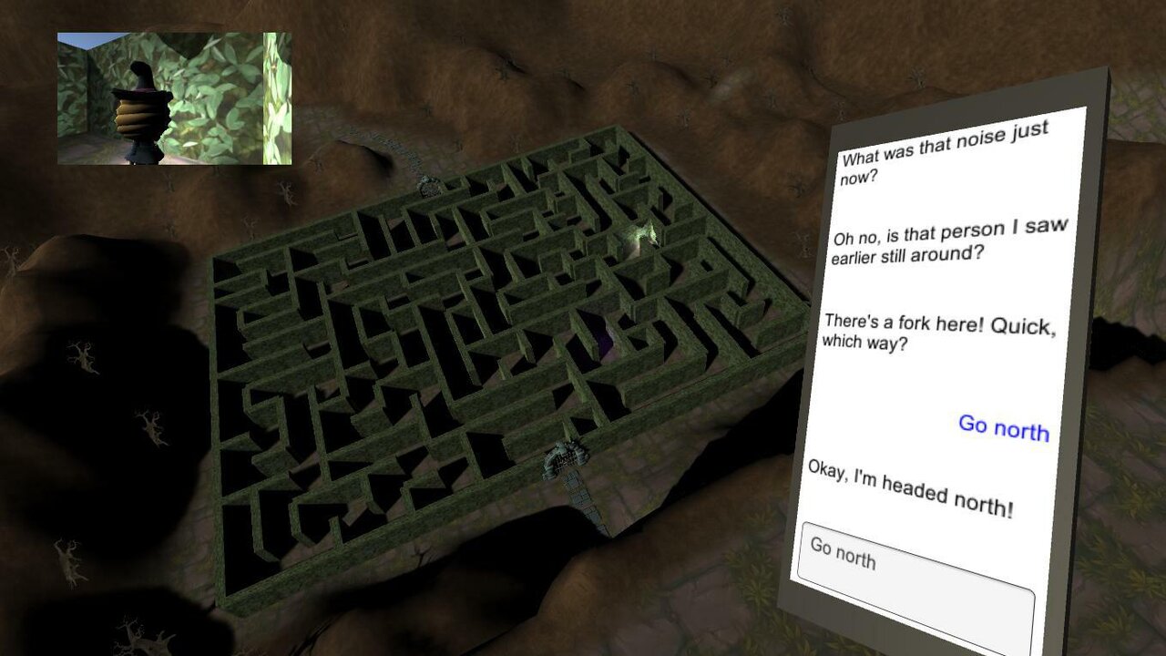 A little maze game I made in one day for the Spooktober Jam. Your friend is lost in a witch's maze, and you're the only help she's got to get out! Text her directions to the exit, before the witch catches her!