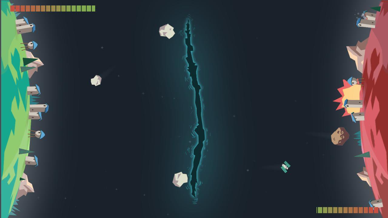 A fun two player game for Android tablet. Play a heads up match with a friend. An evil Space Rift have apeared between Red and Green planet, and only one world can survive!