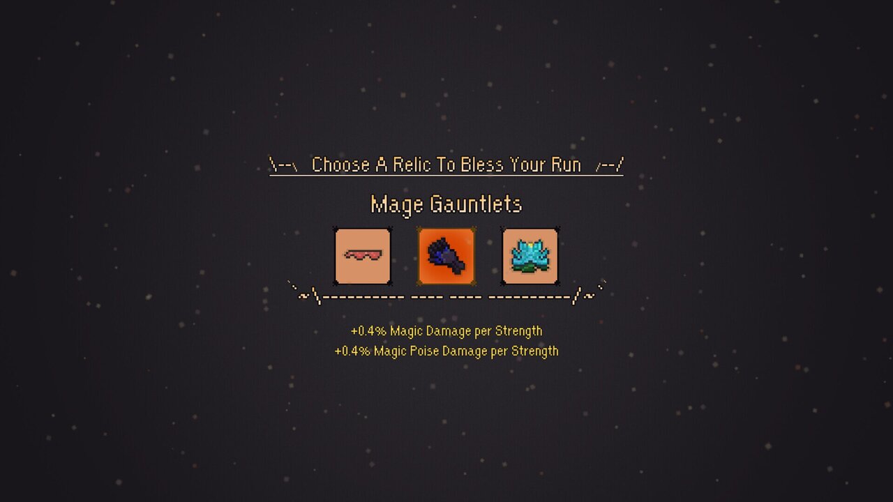 Play and grow your character to play the way you want. Eight different starting classes keep each run different from the start! Level up your character's stats in whatever way you see fit - each stat is multipurpose. Pick your relics after each great enemy defeated to give you a major, unique boost in power (and believe me, you will need it)! No two characters are the same!