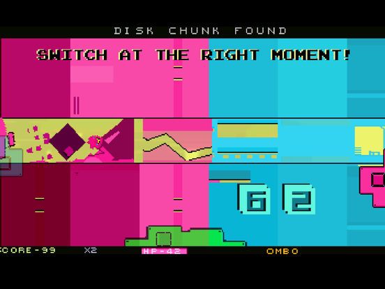 Touch left and right to match the BLUE and PINK buildings. Touch the top of the screen to shield against anything GREEN!