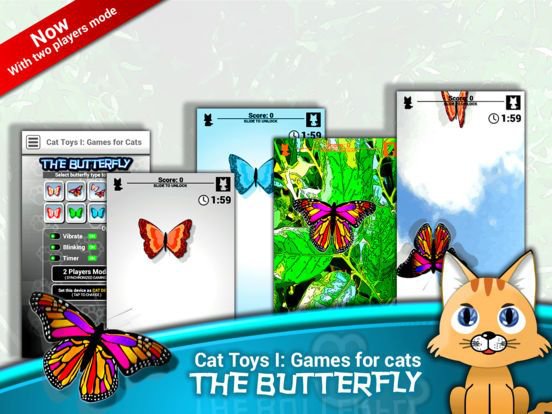 • 6 Games with 44 variations for your cat (Ladybug Smasher, Laser Pointer, Fly Smasher, Butterfly Smasher, Chase the Mouse and CatFishing)