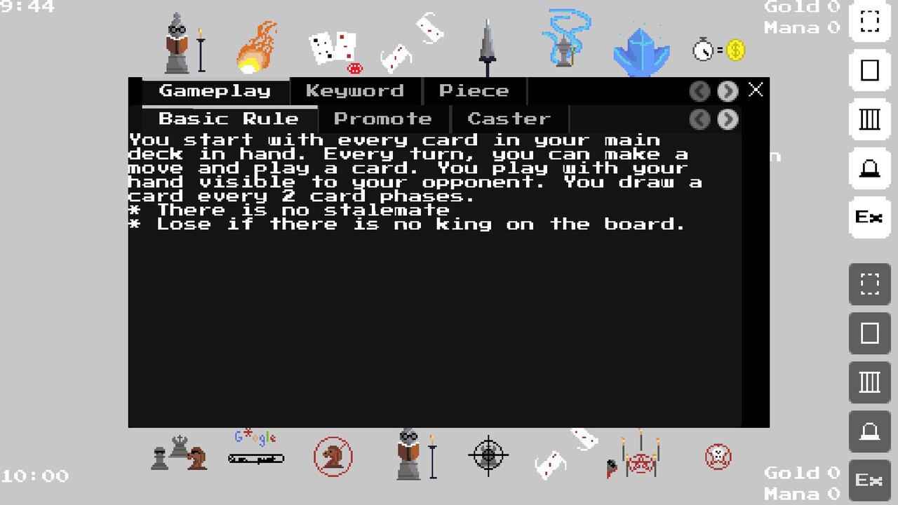 Chards is a strategic card game that you play chess with cards. Although this is a card game, this game has basically 0 RNG mechanic. This game emphasizes strategic thinking and planing.