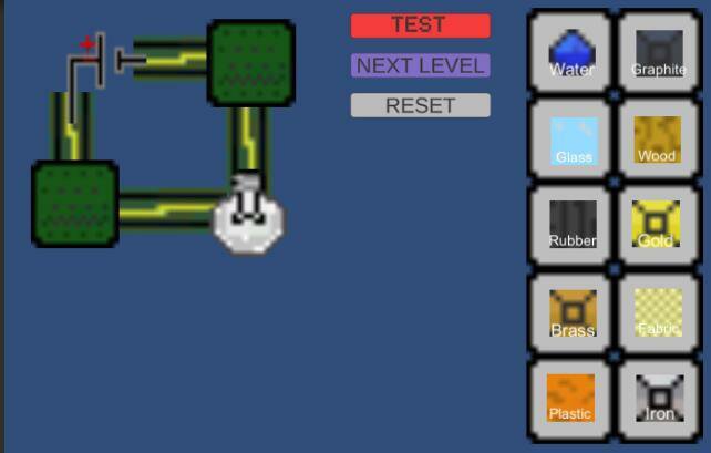 This is a simple, but fun science puzzle game were you have to place different materials to complete the circuit. The game was created to teach people about insulators and conductors and how they apply to circuits. To complete each level you need to fill every box in the circuit. Have fun and good luck. :)
