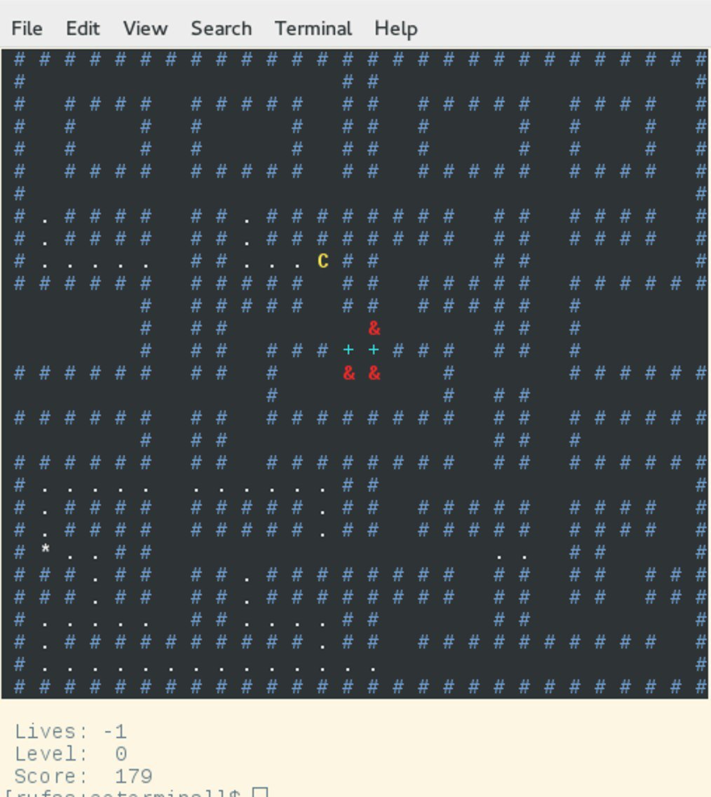 Your terminal must be at least 50 chars wide by 20 lines (at least 57x35 for pacman). Simply type the executable name to begin.