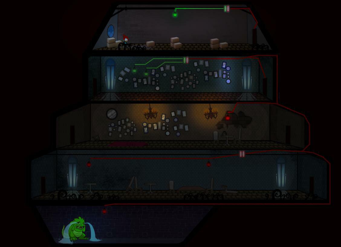 The giant monster in the basement starts crying if it is too dark, when he cries the whole mansion looses control.