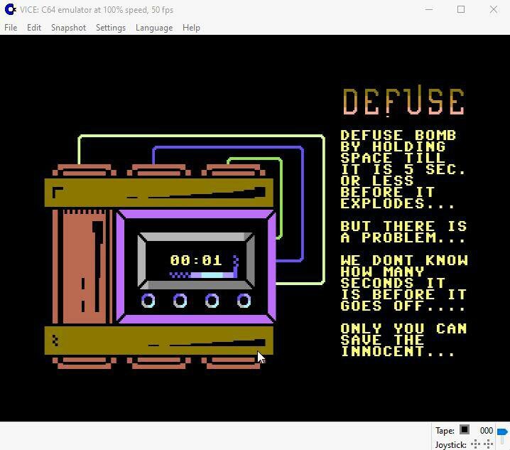 This competition is about creating a brand new compilation tape - with any proceeds to be donated to charity. To help achieve the aesthetic from the original, there is a tight limit on the amount of memory the complete game can use: all code and data is located below $1000 (4K) in the c64 memory....