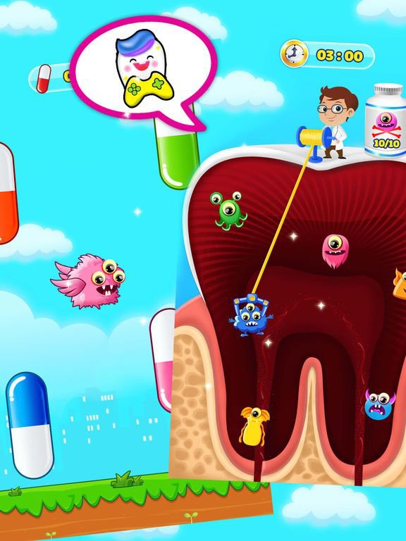 Be the best dentist at this crazy fun office! Treat patients with professional doctor tools like syringes, dental tweezers, laughing gas and more! Play fun-filled mini games!