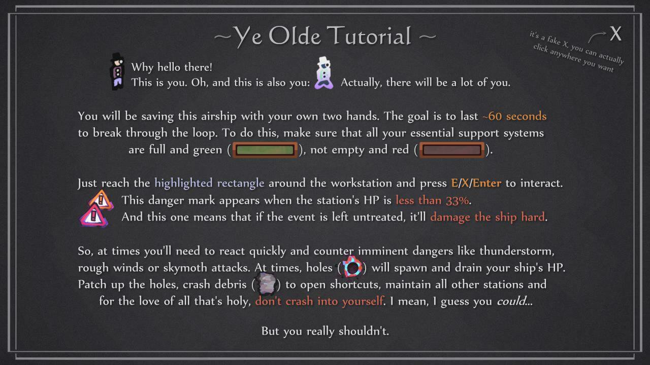 “Okay, maybe this one man crew idea wasn’t the best when it comes to piloting an airship. But who could I trust other than myself, really? For now, let’s try and stay afloat”.