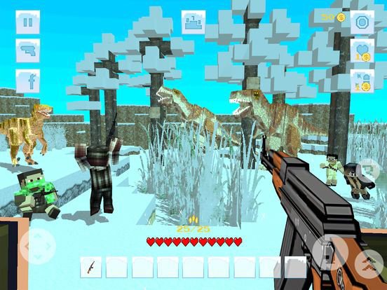 What a crazy age we live in?! We have made all kind of robots, futuristic weapons and now they have revived the dinosaurs. With all the pollution, we have pushed our planet into the ice age and the world needs our help with containing the spread of creatures from the jura and paleo era. Carnivores as raptor and t-rex will attack you all the time and you have to fight back. Herbivores may look innocent, but a moment you come close to them, their instinct to defend themselves will come into place and you will have to shoot your way to survival.