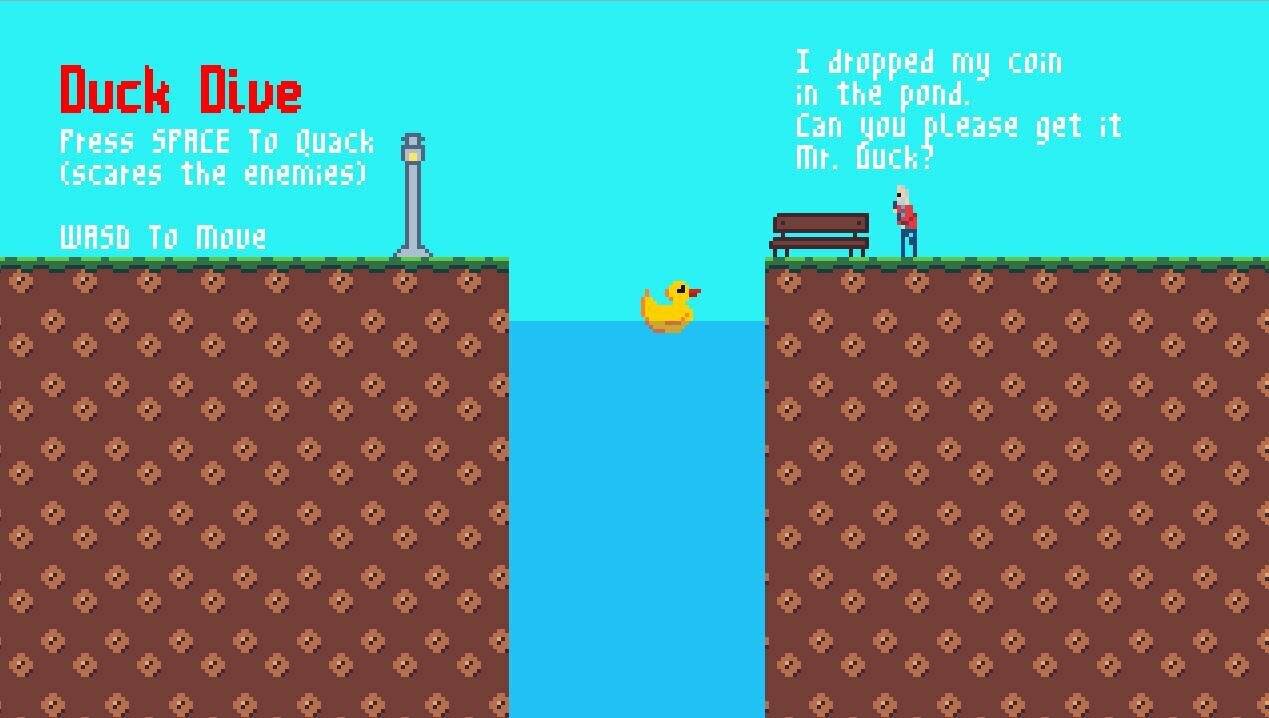You play as a duck who needs to collect an old mans coin from a very deep pond, while dodging bullets from a thing that even I don't know what its name is.