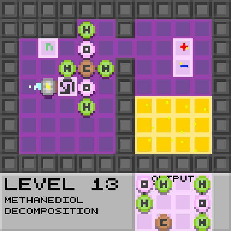 Made this over the course of a week or two. It's a chemistry based puzzle game where you move atoms around on a tile-based grid to create the required output with the help of special tiles which can bond, rotate, and teleport atoms. Atoms can be bound together into molecules and molecules broken down into atoms. For now there are 20 levels, with more coming eventually.