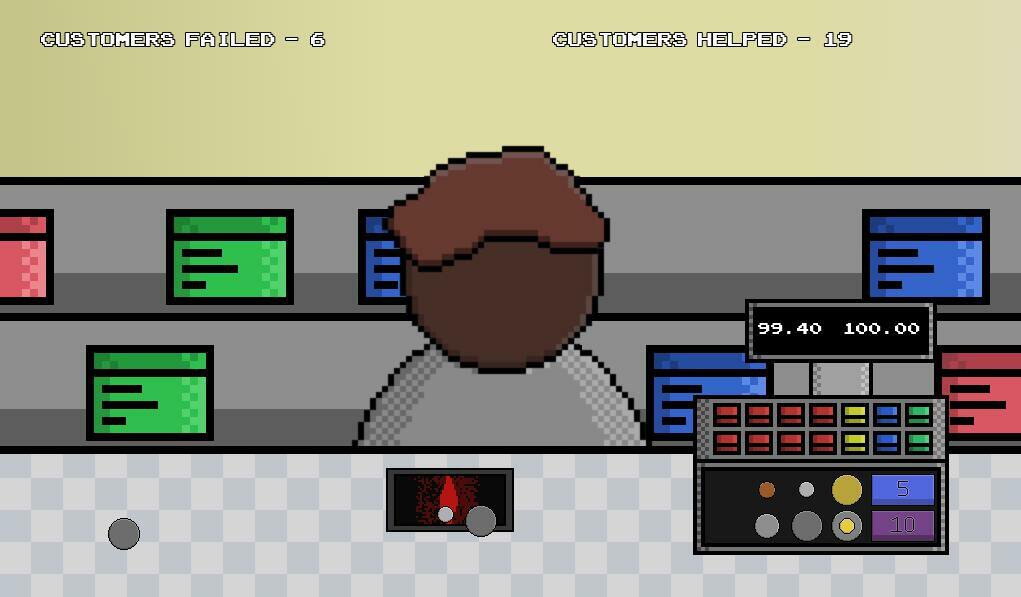 In this game, play as a cashier at a retail store, working out change for customers. People are randomly generated each time, so each playthrough is unique. In the end, you get to play in endless mode, where you help as many customers as you can before you get bored. Feel free to share your high score in the comments.