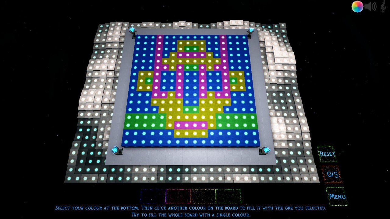 Flux is deceitfully simple. Fill the whole board with a single colour using as few moves as conceivable.