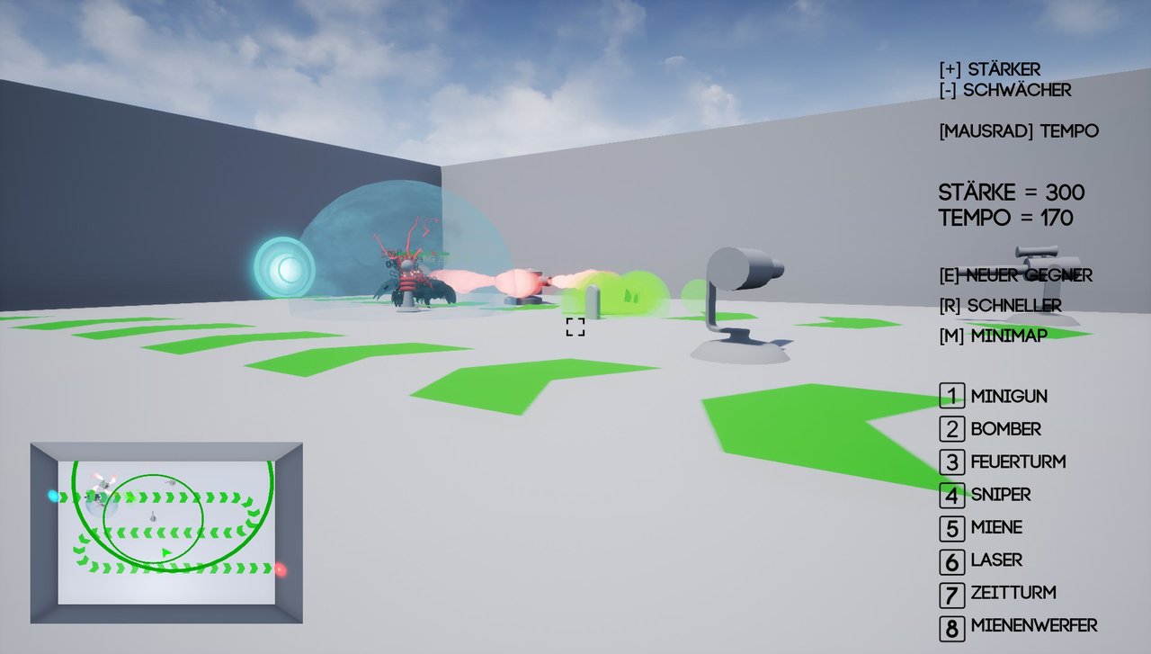FPTD is a First Person Tower Defense where the goal is to kill the monsters before they reach the red portal.