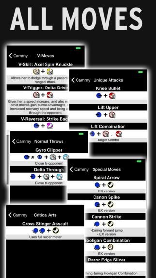 This app is free but has an in-app purchase to upgrade to the Pro Version which will remove the ads and it will also allow you to save more than 2 Custom Combos per character. The free version is restricted to 2 Custom Combos per character. This app will evolve into the SF5 app once the full game is out so you will never need to download another app!