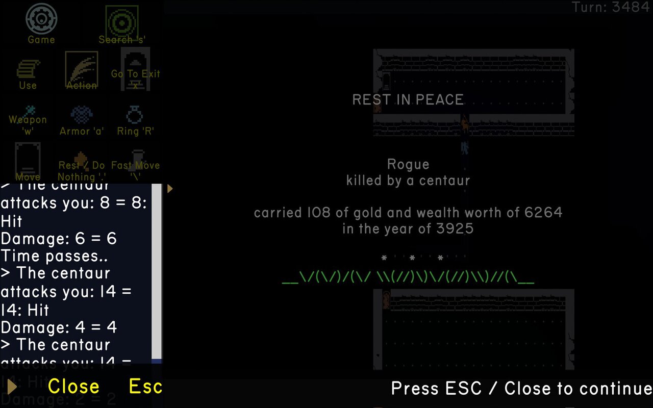 This game was inspired and influenced by the original Rogue - a 'roguelike' genre defining game from the '80s originally played in Unix text terminals - but adds many enhancements and refinements in order to allow for more modern user friendly experience - all while preserving the original feel and gameplay -