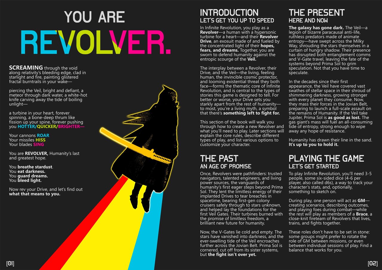 INFINITE REVOLUTION (Physical) by Gwen ClarkINFINITE REVOLUTION is a LIGHTSPEED EXOSUIT DOGFIGHTER RPG designed for 2-4 players and a GM