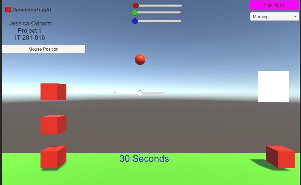 As someone who is passionate about healthcare informatics and psych I always create my games with those two in mind. My game is created with my patients in mind as a way to help them calm themselves with they are feeling anxious or overwhelmed. My recent features include a sphere that can be used as a way for one to manage their breathing. If one does not need this feature a simple click can have it removed. The next feature I like to call, meditating cubes because as the game begins they are floating over one another and eventually stack up and fall so that my third and final feature, which I call player cube can be used to knock down all three meditation cubes with the usage of the arrow keys or jump over them with the usage of the spacebar in a fun game to help one relax. I want the user to feel less anxious and calm when they interact with this game and its new features. All new features include either rotating and/or scaling animation.