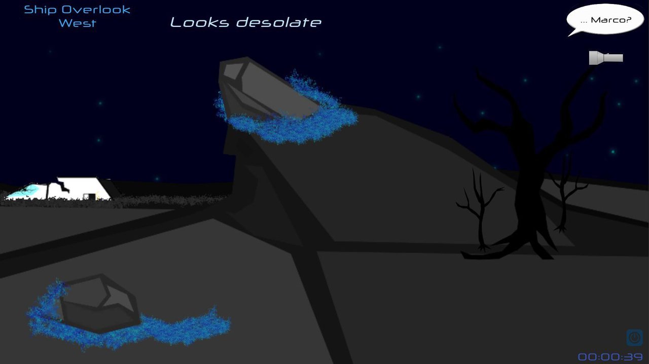Marco Polo is a classic point-and-click style game where you must save your child and escape the indescribable terrors of the world you have crashed on. Armed with only a flashlight, your voice and your unmatched wit and cunning - you must traverse the terrain of this small world, find your child and make a hasty exit. But your ship is badly damaged from the crash, how can you escape? How can you find your child? At least you have a way of communicating with them using that childhood game, we all know and love.