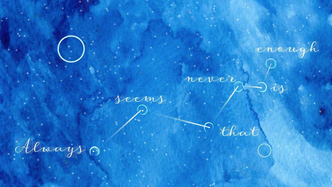 You might find Stars, Planets and Paths as main elements : Stars will unveil words, planets symbolize silence and paths the way to construct sentences inside the game . Some of the paths draw the well know constellations