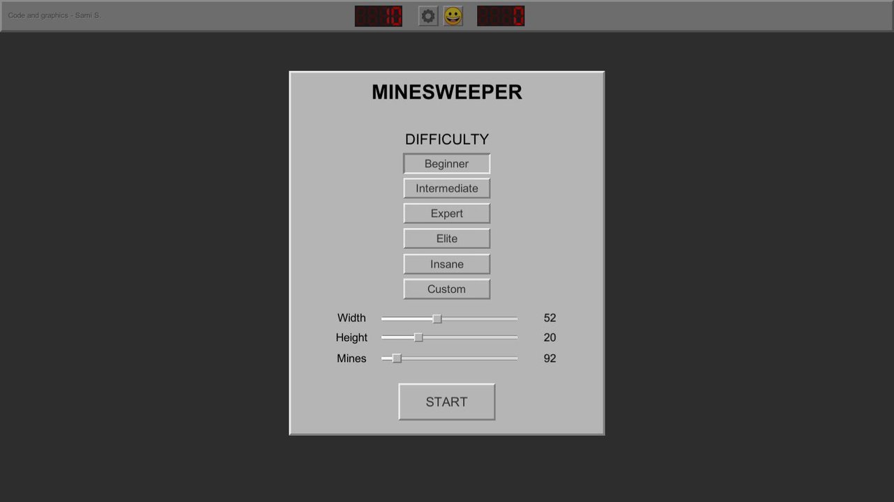 You can select "Custom" mode and set the playfield size and mine count as you wish - maximum size is larger than in the original, and you can create real marathon challenge (120x60 tiles) if you wish so. BTW - empty area open flood fill is not using a recursive algorithm, so there should be no stack overflows to crash a game.