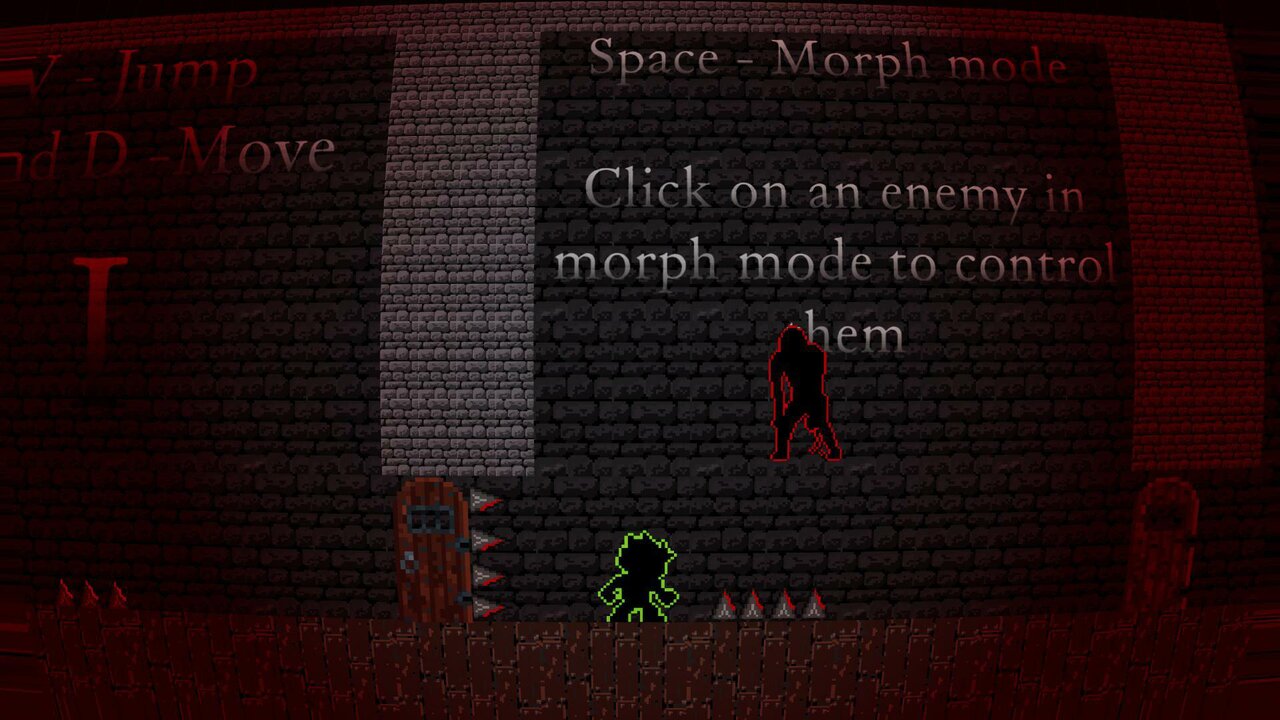 In a platformer where you have no weapons and no way of fighting for yourself, you must rely on your supernatural ability to morph into your enemies, controlling their every movement. But while you traverse the spooky, monster infested dungeon as one of the monsters who previously tried to kill you, don't forget to watch your original body which moves as normal.