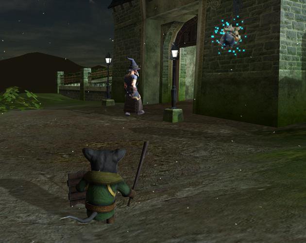 The wizard goes around his house in a set path and if he hears a noise he will go check it out. He uses Unity's pathfinding for movement.