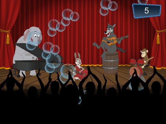 You decide how the animals should play the song. You can start and stop the instruments by touching the animals.