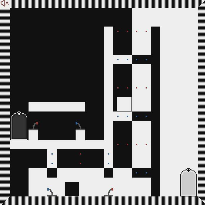 A short puzzle game where you must maneuver two entities, a light square and its shadow, through an increasingly complex maze of corridors. Where the light square moves, its shadow will follow. The light square can only move through dark tiles and the dark square can only move through light tiles.