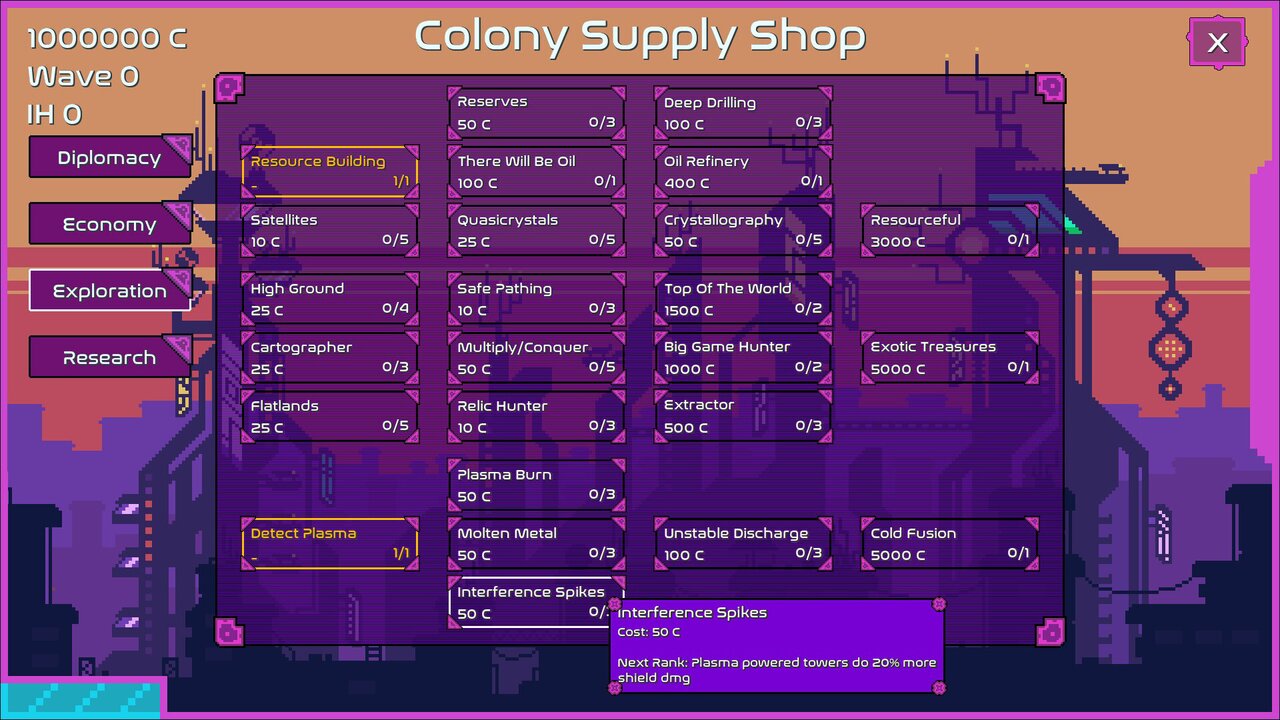 Use your resources to power advanced towers - unless you would rather sell them for intergalactic credits, which can be used to buy one of the 100+ upgrades to your towers, city or economy.