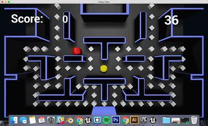 I started this project in order teach myself the unreal engine and learn their C++ based blueprint node system. I started with reconstructing the third person blueprint to do a top down angle so we can see pacman and when I realized I couldn't fit the entire level in one shot without resizing all of my assets, I used triggers to get the cameras to change angles when you nom your way into the other side of the level.