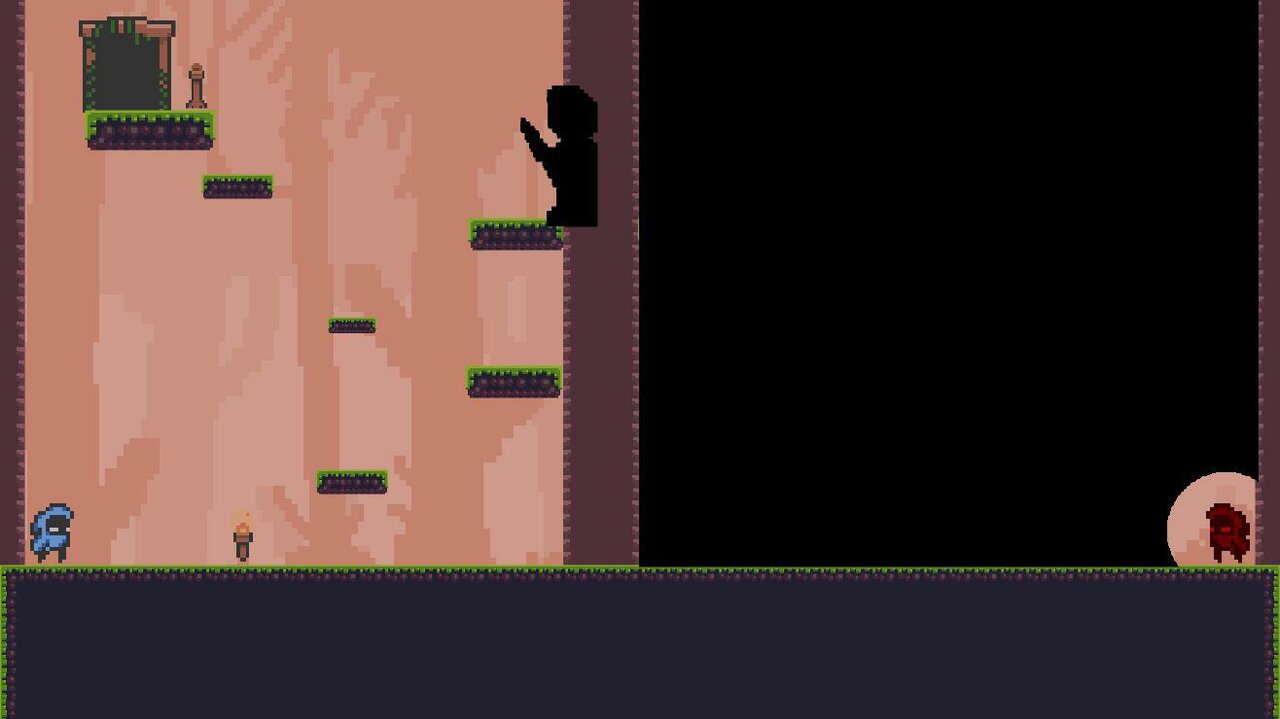 Pass the Torch is a puzzle platformer. The aim of the game is to guide both players to the door to the next level while lighting the tiki torches beside the door.