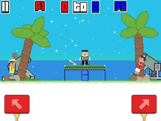 Tap the jump buttons to leap left and right. Hold the jump buttons after hitting the ball to add spin.