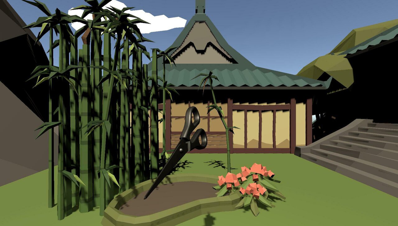 Play rock, paper, scissors through doorways to other dimensions on a platform floating through outer space.