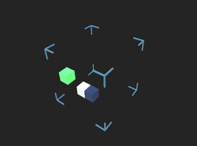 Your goal is to drop down on the green cube with blue one, from distance of at least one block above. During game you will encounter purple cubes that are affected by gravity, and red cubes, which will crush you if they fall on you.