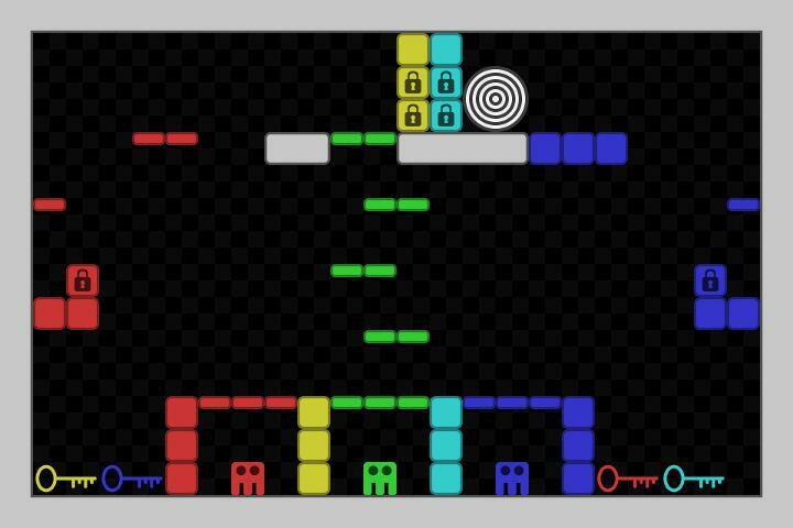 RRGGBB is a puzzle platformer with three characters of different colors, which are red, green, and blue. These three colors never collide with each other, but they can still interact through other combined colors and mechanics. Solve the puzzles in each level and reach the shared exit portal.