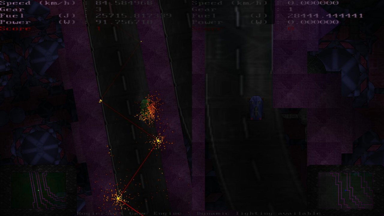 This is a two player racing game where the objective is not to win the race but to kill your opponent by making him crash.