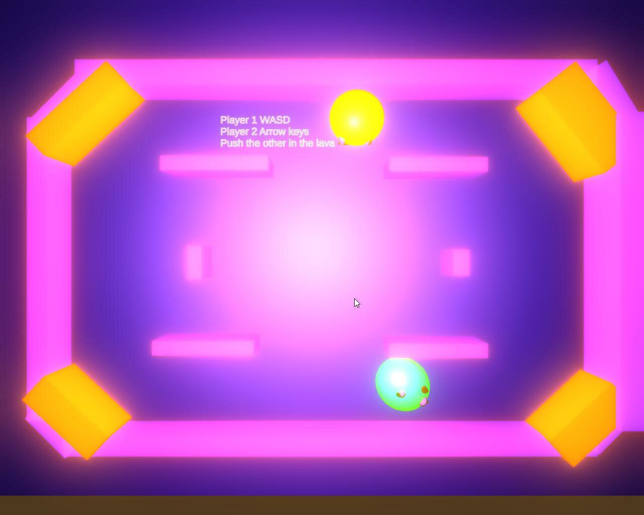 This is my first game using unity. I am trying to learn how to use the platform so this is my "test" game for this learning experience. This is also a two player local multiplayer game where you knock people into the lava stuff.