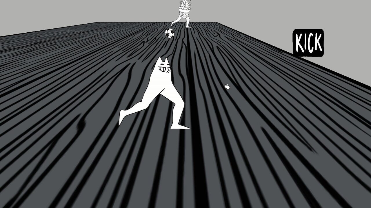You ever woke up and told yourself, 'Ah yes, I feel like I must take on the role of a cat that only has legs that is trying to knock off objects on a table with a small soccer ball'? No? Well now you're here, so go off and knock things off the table as thigh cat!