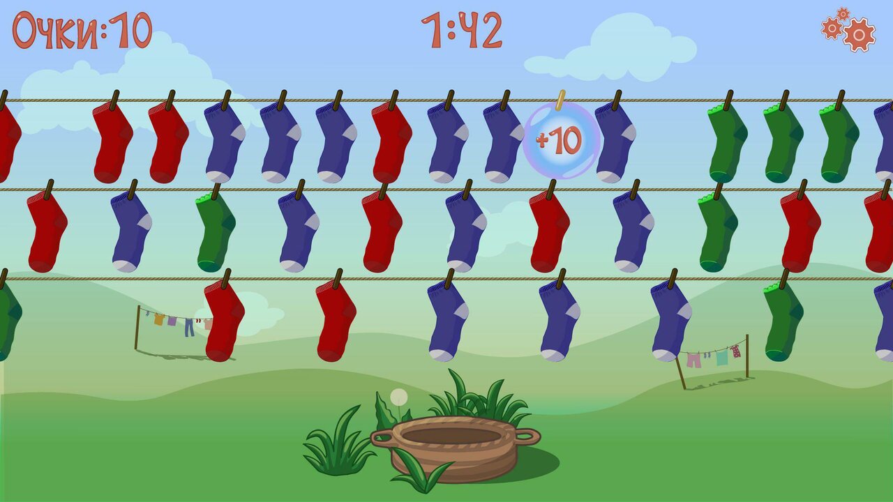 Игра про носки, попробуй уложить их все в корзину!