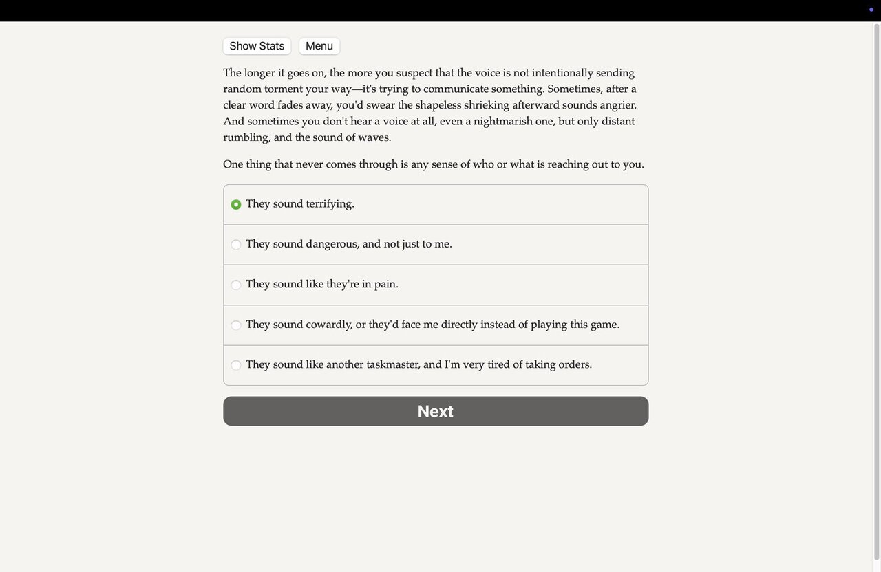 Specters of the Deep is an interactive epic fantasy novel by Abigail C. Trevor, author of Heroes of Myth and Stars Arisen. It's entirely text-based, 1 million words and hundreds of choices, without graphics or sound effects, fueled by the vast, unstoppable power of your imagination.