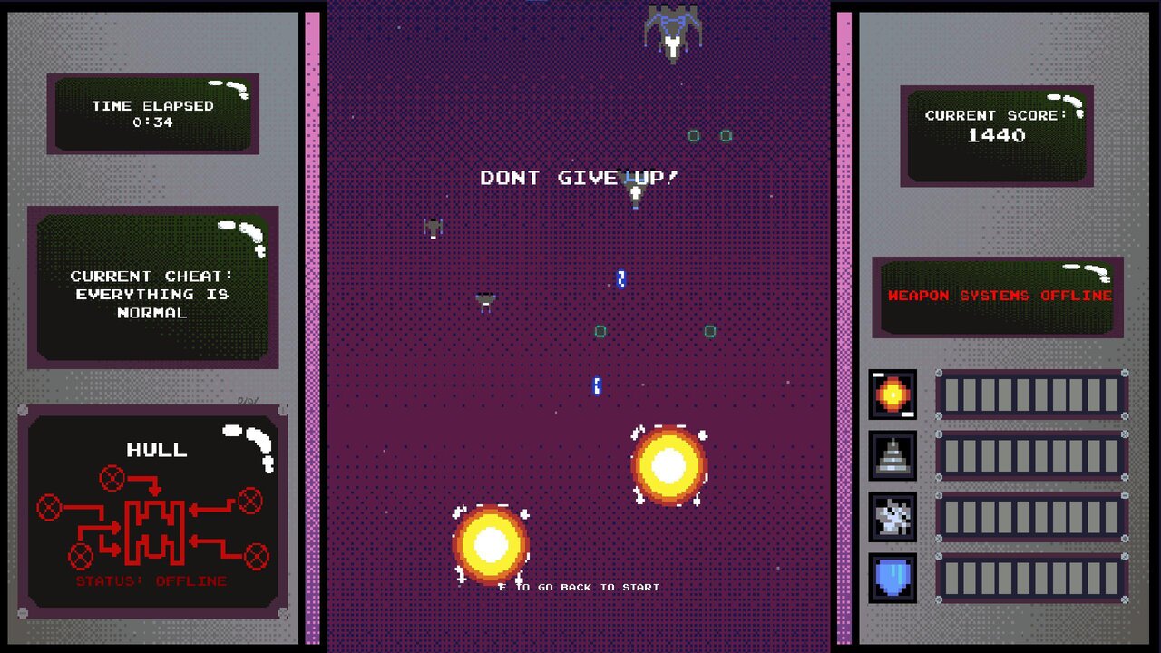 Players have the option to input a cheat before starting the game that alters their in-game capabilities. Enemies spawn in waves after waves to attempt to take down the player.