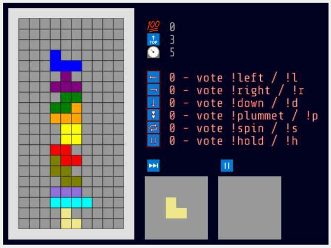 Your chat uses can vote which command will be used, then after a few seconds the most voted command is applied. In case of a tie, it will wait until the tie is broken.