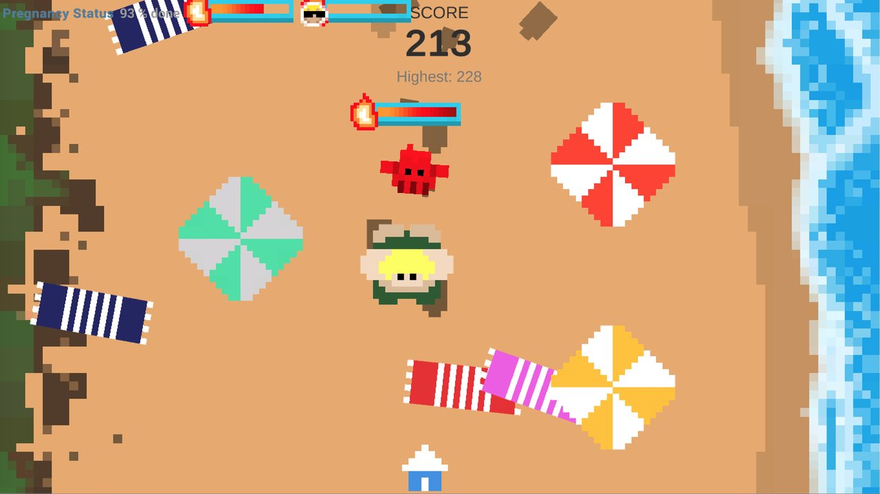 You control the mother of a family, your husband and your kid are susceptible to sunburns. Your husband is sleeping and his sunshade isn't working very well so it closes itself randomly, whenever you open his sunshade, he gives you "thank you" kiss and somehow you get impregnated, after a while a new kid is born.
