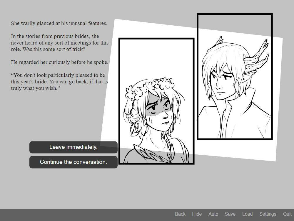 A short choose your own romance fantasy story about the Forest Lord and his offered bride. Six endings in which you decide whether the lady says I do or I don't.