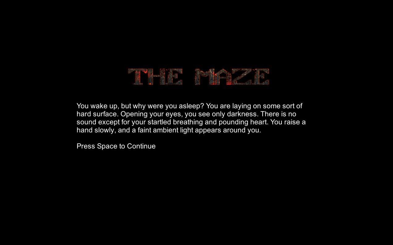 This is a Text Based game that I have written and compiled for a game design course. The object of the game is to follow the on screen prompts and try to escape the maze itself.