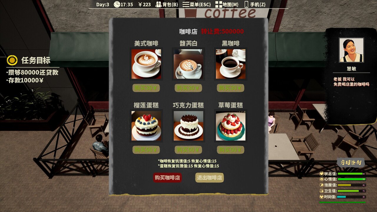 In the game, there are states such as mentality, mood, hunger, hygiene, etc. You will also experience corresponding changes in various states during work, entertainment, or dining. Just like in our daily lives, being in a bad mood, hungry, or feeling wronged can all affect our mentality, and mentality is one of the most important factors in doing everything well. You need to work hard to maintain your physical and mental state.
